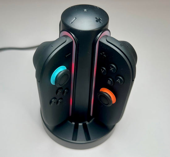 Charges all four controllers quickly and the LED icons make it easy to see which ones are done. The dock feels sturdy on the desk and the color lights look great with the rest of my setup. Exactly what I needed to keep everything charged in one place.