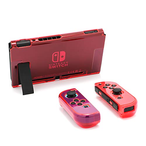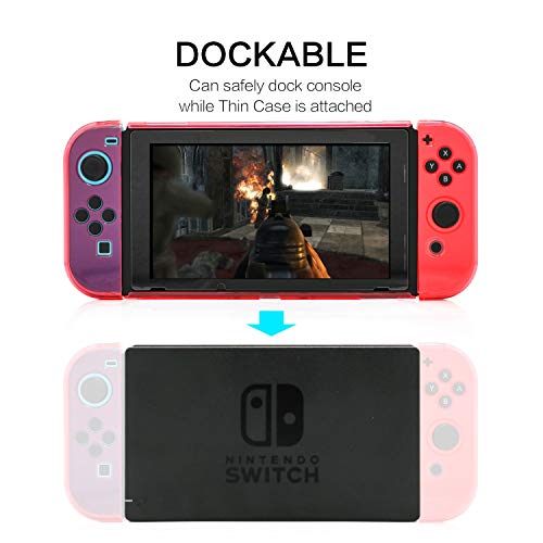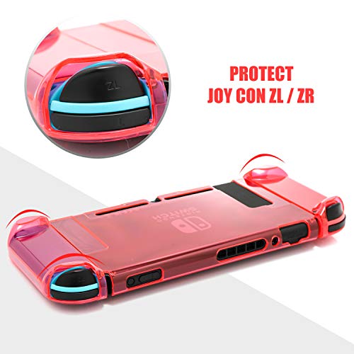 Dockable Case for Nintendo Switch, Protective Case for Nintendo Switch with a Tempered Glass Screen Protector and 6 Joy Stick Covers, Fit into The Dock Station - Red