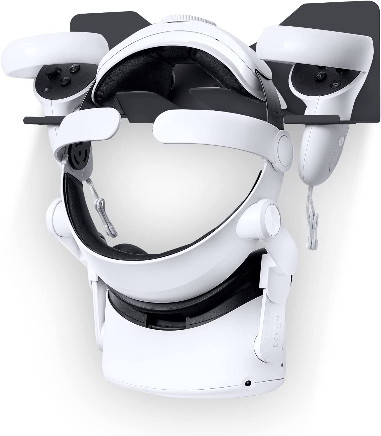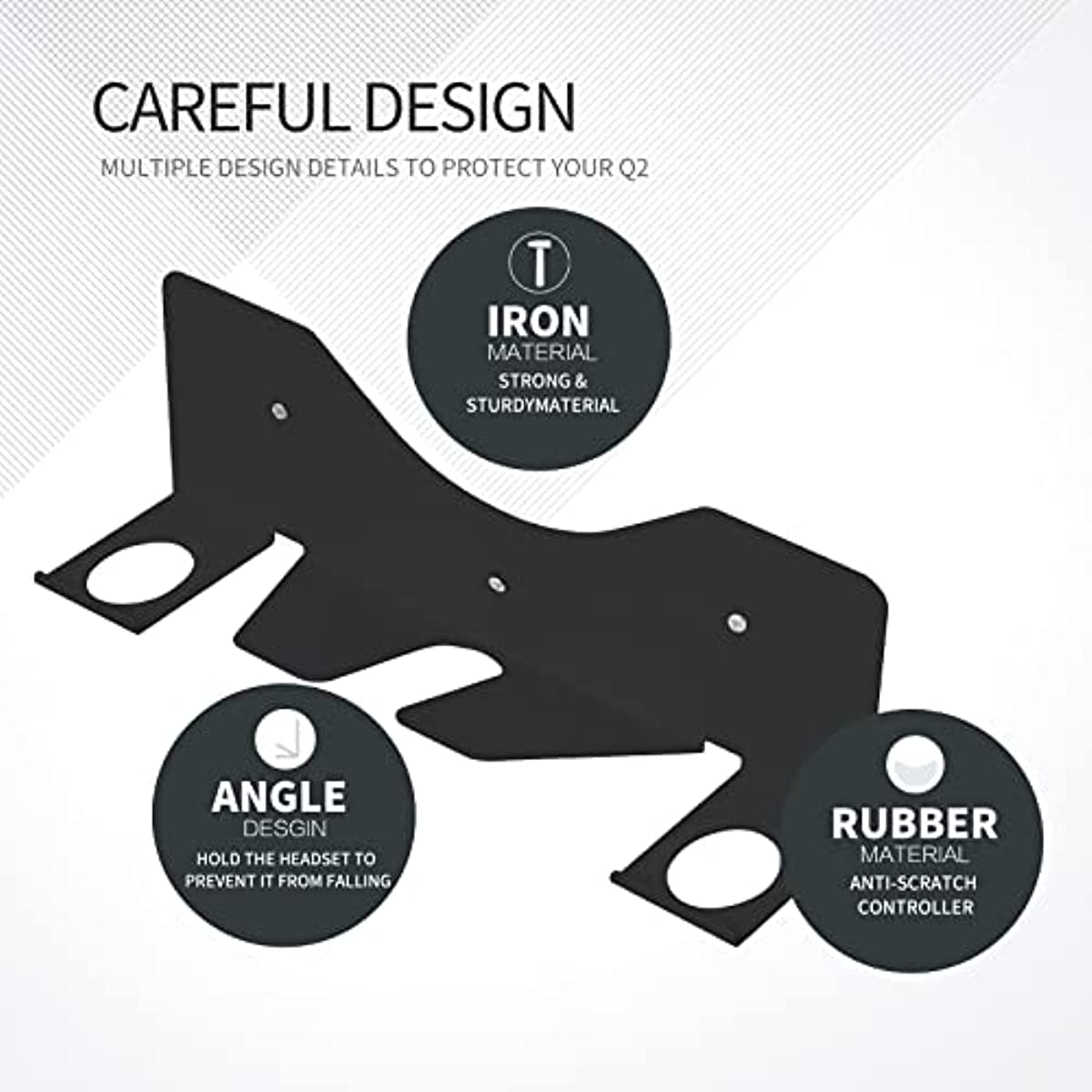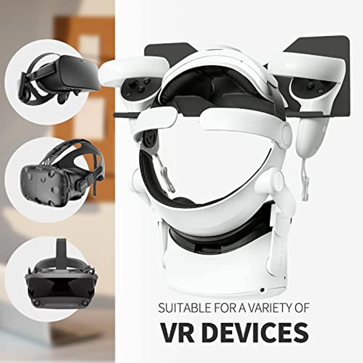 Oculus Quest 2 Wall Mount Storage Stand Holder Compatible with Oculus Quest 2, Quest 1, Valve Index, Rift S, HP Reverb G2, Vive Pro, HTC Vive, Playstation VR Headset and Controllers VR Rack - Black