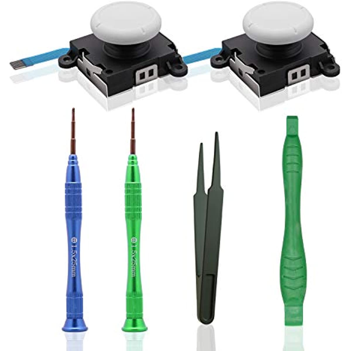 Replacement Joy Stick Compatible with Switch lite, Joystick Replacement Compatible with Switch lite and Repair Tool Kit for Switch lite - 2 Pack (White)