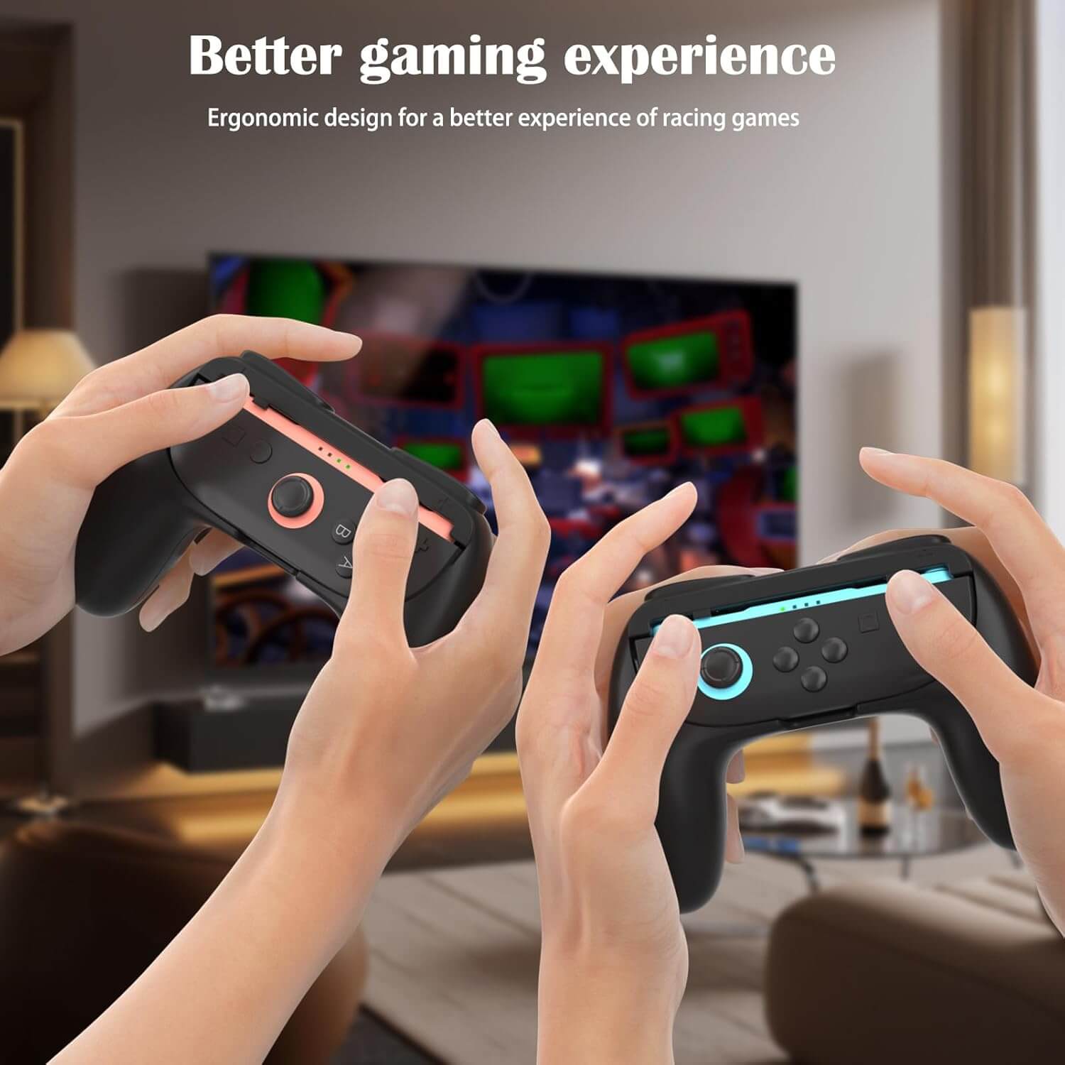 - Enhanced Gameplay with Joycon Grips and Steering Wheels - The joycon grips and steering wheels are made of ergonomic, anti-slip ABS material, designed to improve accuracy and comfort during racing, fighting, and multiplayer games. A must-have for serious players of Nintendo Switch 2