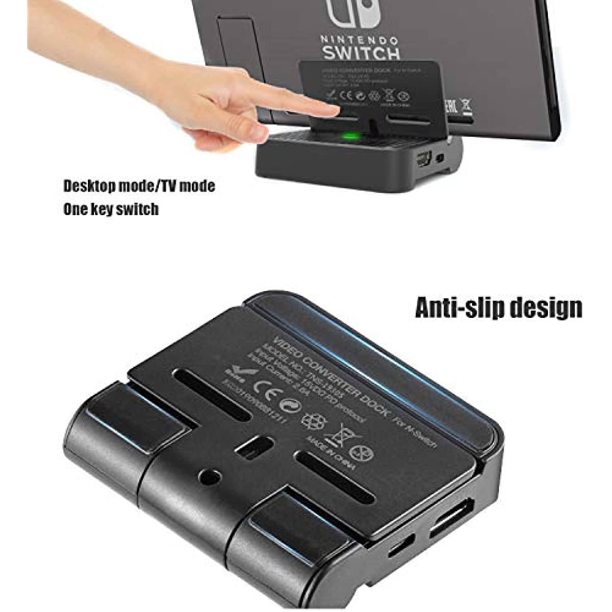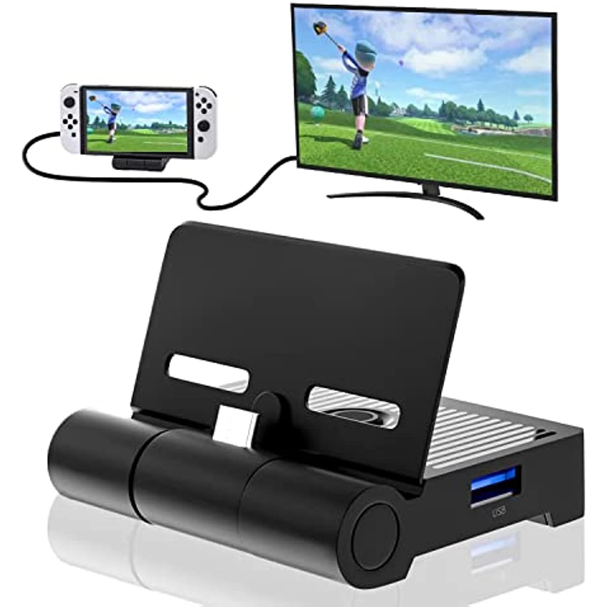 FOLDABLE SWITCH HDMI DOCK - The special point is that this switch HDMI dock can be folded. Most switch tv docks can not be folded on the market. The HDMI video conversion dock size is very small and sleek. Only 1/3 the size of the Switch, folding design, it is easily portable. Charge, projection, and display.